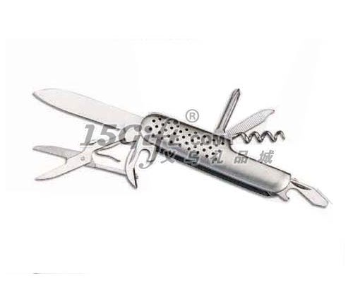 產(chǎn)品功能:1、小刀 2,開瓶器(附帶功能:一字螺絲刀)3、紅酒開瓶器? 4、十字螺絲刀 5、罐頭刀,6剪刀 7,指甲搓