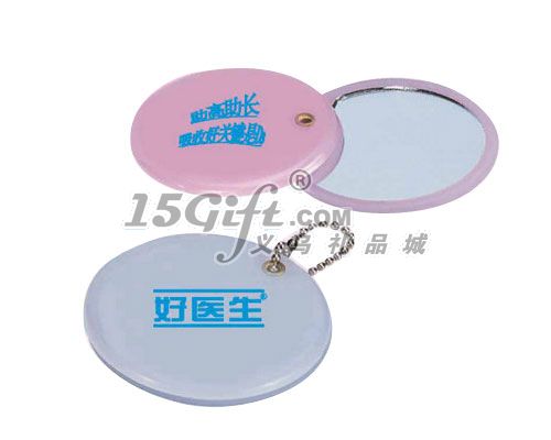 圓形旋轉(zhuǎn)單面鏡,可當(dāng)掛件使用,塑料材質(zhì)。