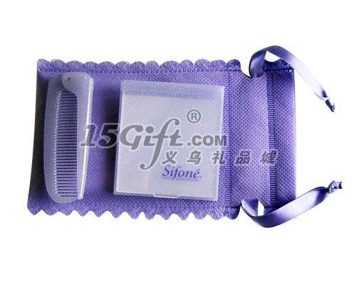 塑料材質(zhì)的套裝鏡,方形單面鏡,可當(dāng)臺鏡使用;折疊梳。