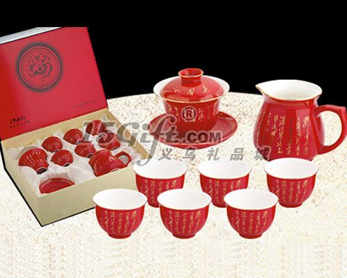 產(chǎn)品為功夫茶具套裝,紅色茶具高檔喜氣,美觀實(shí)用