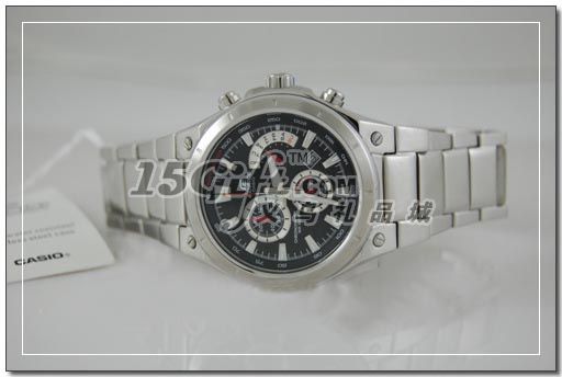 EDIFICE新款EF-526D,配備100米防水及秒表功能,很有層次感的表盤底面,扇形的星期顯示表窗設(shè)計(jì),另外兩個(gè)小表盤分別顯示秒鐘和秒表狀態(tài)中的分針,黑色和白色供佩帶者選擇。