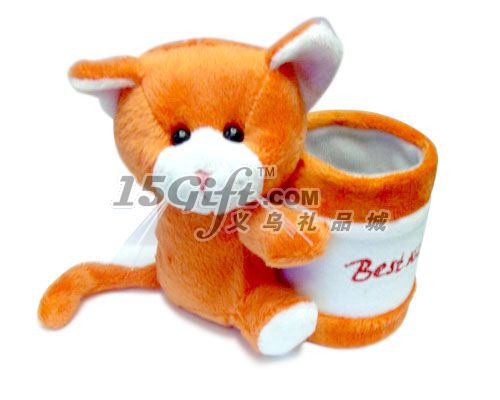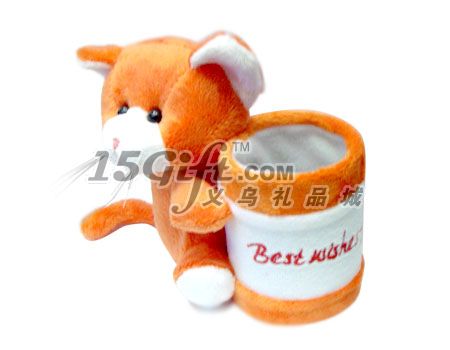 小型毛絨卡通筆筒, 采用普通毛絨料, 做工細致、造型新穎。適用于家居辦公。