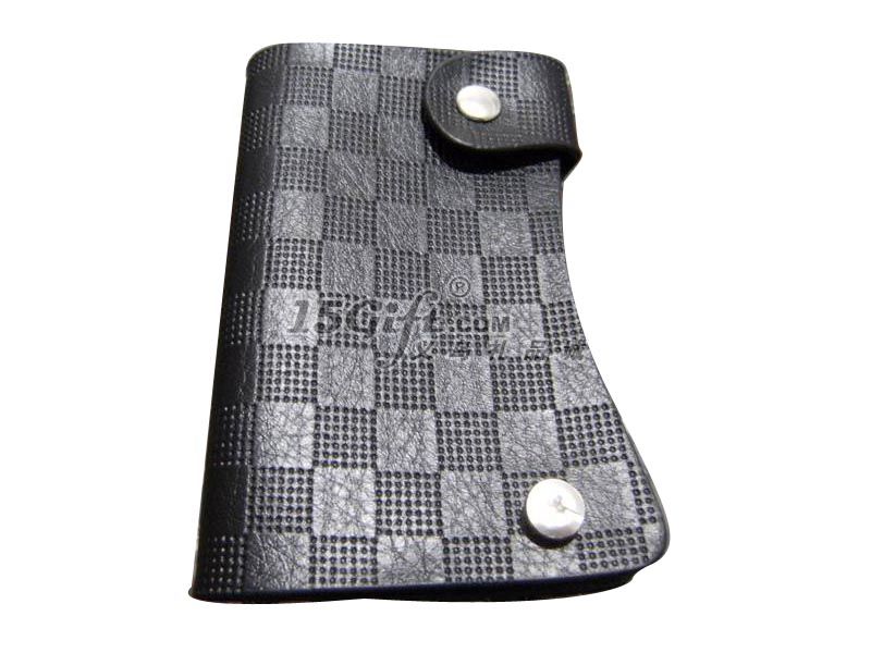 方格真皮卡包(圓翻)