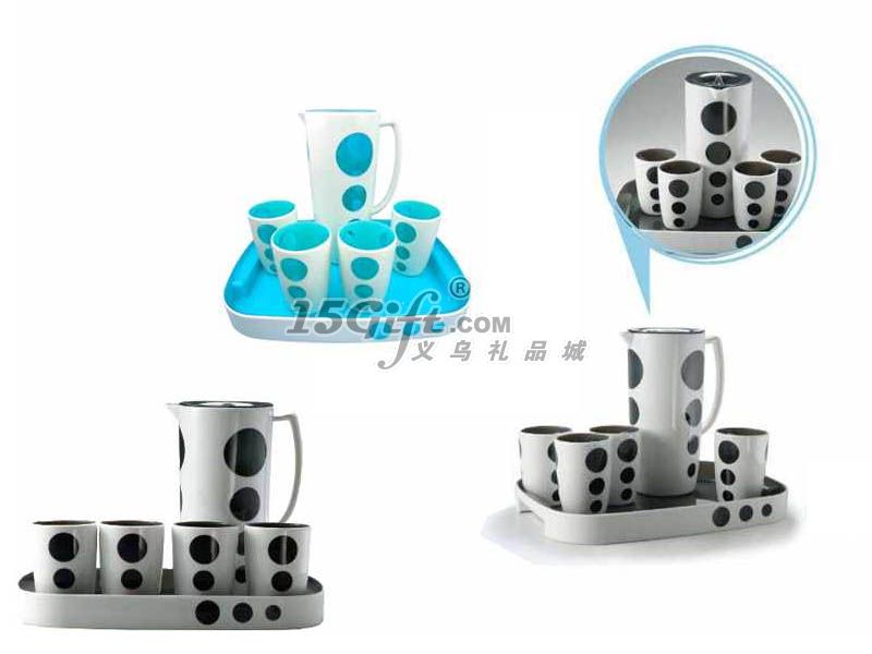 產(chǎn)品特點:精選AS原料,安全環(huán)保,經(jīng)久耐用;歐式設計風格,雙層注塑工藝,透明內(nèi)壁與鏤空圓形外壁的完美結(jié)合使得整體線條流暢,渾然一體,典雅別致,一壺四杯,特配托盤,時尚有品味。