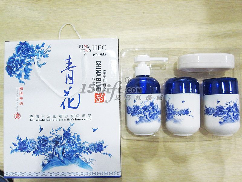 青花浴室三件套