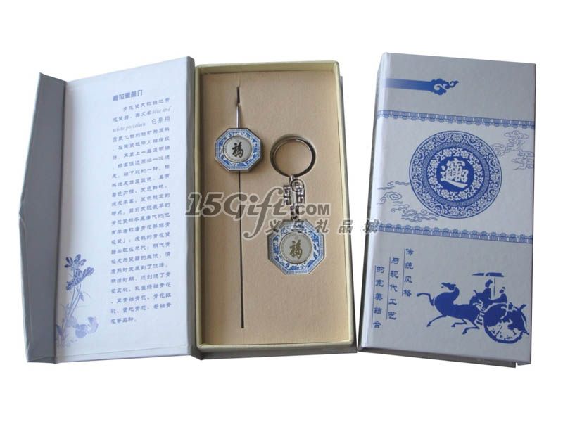 青花瓷兩件套(書簽和鑰匙扣)