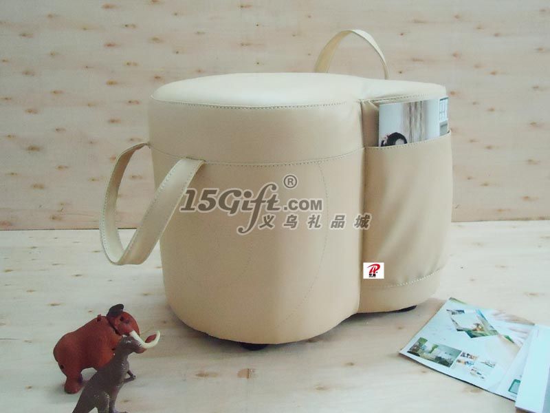 b 皮凳的質(zhì)輕體小和側(cè)邊口袋,體現(xiàn)了時尚功能主義,可方便攜帶和移動,又可隨手放報紙,雜志等小物件。