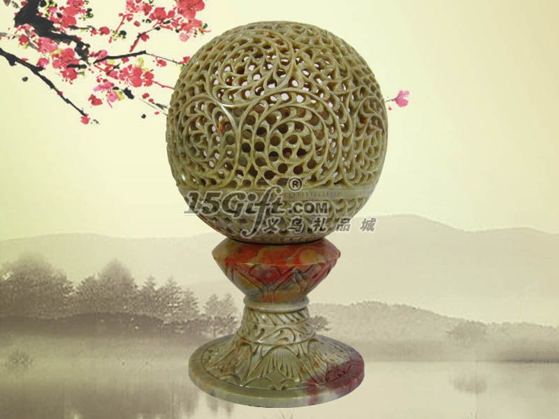 相關介紹:由天然的青田石鏤空雕刻而成。最神奇的地方在于:圓球內(nèi)鏤雕有一朵蓮花,這朵蓮花是雕刻師通過圓球的孔洞往里鏤雕出來的,且圓球毫無破損之處,顯示了雕刻師精湛的技藝。圓球和底座用一根鋼軸相連,用手撥動圓球可以順暢地轉動,十分形象的體現(xiàn)了時來運轉的寓意,也顯示了這款時來運轉擺件的送禮、收藏價值。