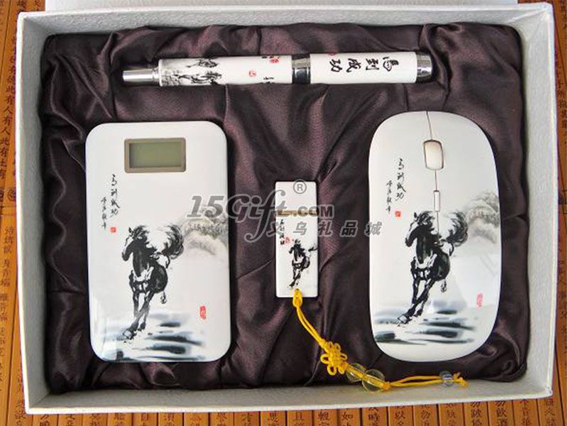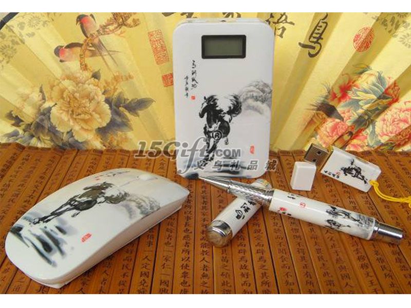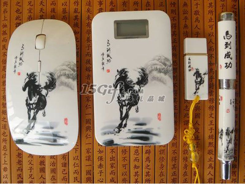 馬到成功6600MA移動(dòng)電源+無線鼠標(biāo)+陶瓷筆+U盤