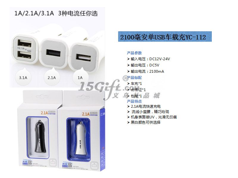 2100毫安單USB車載充