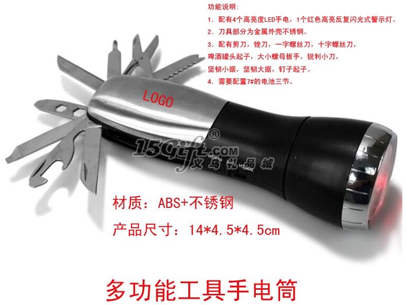 1.配有4個(gè)高亮度LED手電,1個(gè)紅色高亮反復(fù)閃光式警示燈。