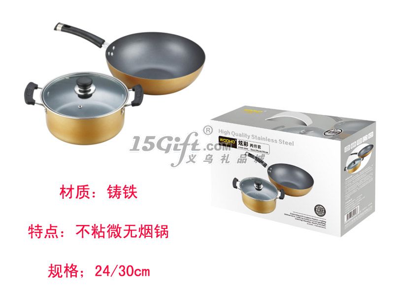 外表面絢麗易潔,時尚美觀。鍋底磁通鍋底,不挑爐灶。加固鉚釘防燙電木手柄順手好握。新不粘工藝健康少油煙。